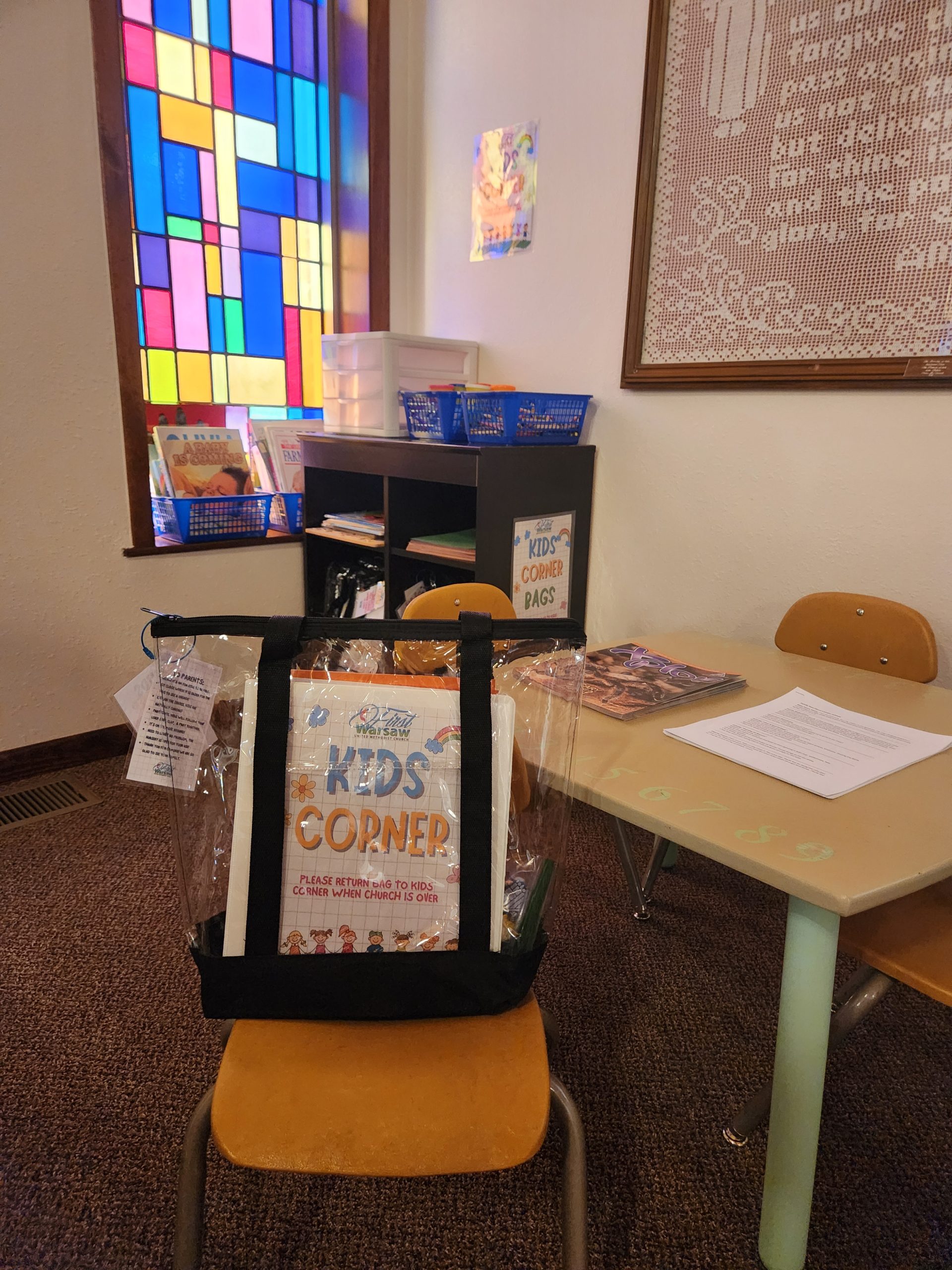 🎨 Kids Corner: Located in the back of the sanctuary, the Children’s Corner is a space just for your kids! It’s stocked with quiet activities and engaging entertainment to help little hands stay busy during worship. Grab a bag and take to your pew, return when service is over!